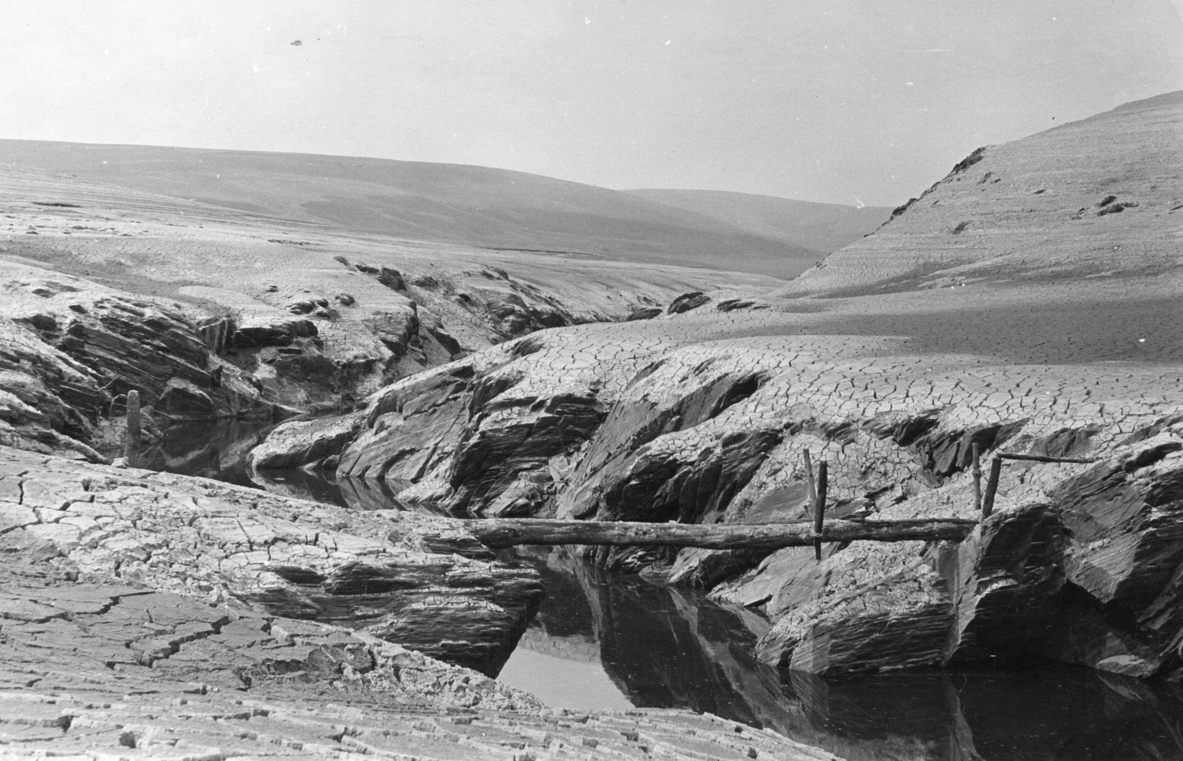 Pont bren Lloc-ddu, bellach dan ddŵr Cronfa Craig Goch, Cwm Elan (Llun: Hugh Davies)