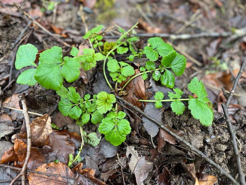 Yma mae’n tyfu yng nghysgod sycamorwydden enfawr, ond mewn gwirionedd prin y bydd coedwig neu wrych yng Nghymru heb rywfaint o fendigeidlys oddi tano. Mae’r dail yn debyg i ddail mefus yn tyfu mewn rhosedi, ond o deulu’r rhosod y daw bendigeidlys. Un o’i nodweddion – yr un fath â mefus – yw bod iddo ddeilen flaen sydd â thri llabed; ond mae gan y bendigeidlys hefyd ddail sengl, ymhellach i lawr y coesyn, un gyferbyn â’r llall, sawl tro, gan ddibynnu ar hyd y coesyn. Tynnwch eich menig: melfedaidd yw’r dail. Os oes digon ohonynt, rhowch eich bysedd yn y pridd llaith a chydio yn y rhan o’r planhigyn sydd yn y pridd. Er ei fod yn gwlwm cryf o wreiddiau mân, ar ôl tywydd llaith mae’n rhyddhau ei afael yn hawdd. Bydd oglau ganddo, un cyfarwydd o bosib. Persawr y gegin ar ddydd Nadolig, i rai. Christingles. Canhwyllau. Sbeis clof. Rhyw awgrym o de chai? Heb os, oglau gwres, oglau sy’n llacio’r ystumog o’r foment mae’n cyrraedd y trwyn.