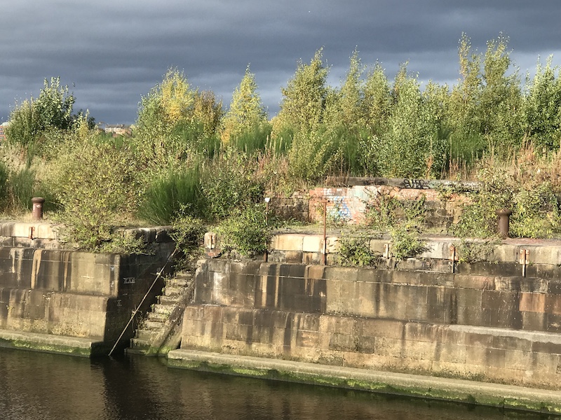 Cael eu gadael ar ôl gan don o dwtio a datblygu fu hanes Dociau Govan. Pan ail-luniwyd y tirlun ôl-ddiwydiannol cyfagos ar gyfer Gŵyl Gerddi Glasgow 1988, roeddent yn dal i fod yn weithredol fel safle lle y deuai llongau i gael eu trwsio, ond fe ddaeth hynny i ben yn fuan wedyn. Erbyn hyn, mae’r graffiti ar y waliau yn datgan fod y man hwn yn lle tra gwahanol i’r adeiladau mawr cyfoes â’u cladin titaniwm a godwyd draw yn Pacific Quay gerllaw, enw nad oes ganddo unrhyw arwyddocâd hanesyddol ond a ddewiswyd i frandio hen ardal y Princes’ Dock a’r Plantation Quay. Daw nifer o bobl leol yma’n gyson. Heddiw, mae yna ddynes yn mynd â’i chi am dro ac mae pobl wedi dod i sbecian ar y prosiect amaethu gwlypdirol sydd newydd gychwyn mewn un cornel o’r safle. Mae yna lwyni coed mêl (buddleia) a choed bedw a sycamor yn gwthio’u ffordd drwy holltau rhwng slabiau concrit, ac ambell iâr fach yr haf ar ddiwedd tymor yn symud drwy’r awyr lonydd. O dro i dro, daw pysgotwyr i eistedd yn amyneddgar i geisio dal brithyll, llyswennod, neu ledod.